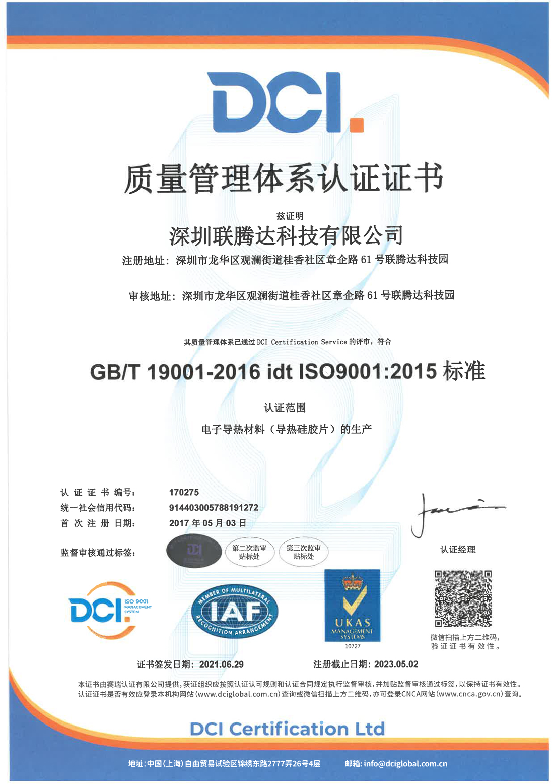 ISO9001认证(爱游戏-爱游戏(中国)一站式体育服务平台 材料生产) 2019-03-14(6529)次浏览 深圳联腾达科技有限公司专业生产等电子器件爱游戏-爱游戏(中国)一站式体育服务平台 散热材料,公司产品均为自主生产,质量可控,可为客户提供一站式电子产品散热爱游戏-爱游戏(中国)一站式体育服务平台 的解决方案,公司通过ISO9001质量管理体系认证,严格遵循各项指标安全生产,保证产品的质量与交期。 上一篇:爱游戏-爱游戏(中国)一站式体育服务平台 硅胶片ROHS报告 下一篇:UL认证 返回列表